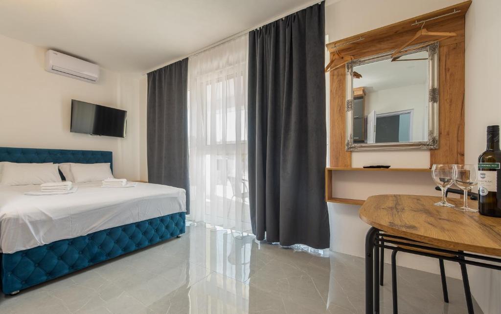 - Ausstattungen: Balkon, Eigenes Badezimmer, Essbereich, Flachbildfernseher, Gratis Parken, Gratis WLAN, Klimaanlage, Terrasse